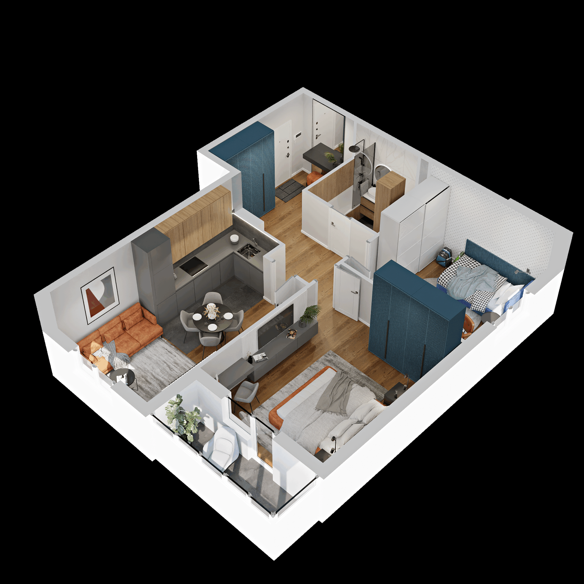 У нас есть 1, 2 и 3-комнатные квартиры с удобными планировками.